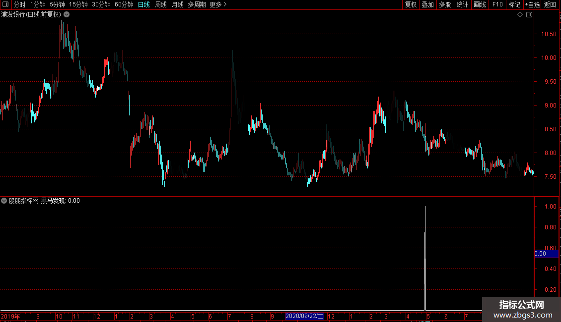黑马发现:CROSS(黑马趋势,短期底部) AND (RL5 - REF(RL5,1) > 0) AND (黑马趋势 - REF(黑马趋势,1) > 0) AND 黑马趋势 > 1 AND LOW <= 支撑位 AND CLOSE > 支撑位 AND HIGH < 压力位;