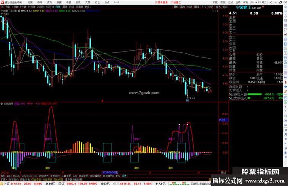通达信辨色骑马,柱体颜色来抓强势股+疯牛选股公式副图源码