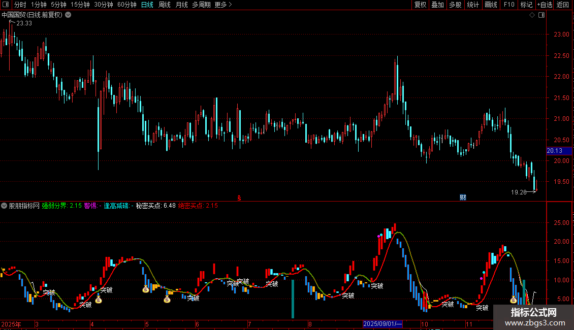 绝密买点:IF((VARG2 <= 0),量2+4,强弱分界),COLORRED;