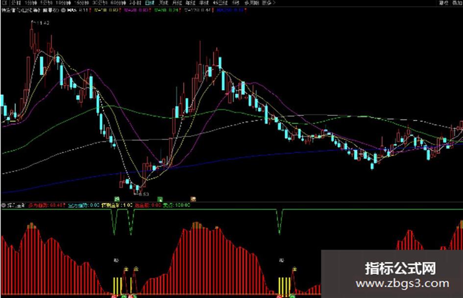 空方趋势:(EMA(MA(多方趋势,5),7)),30,0,COLORF0F000;