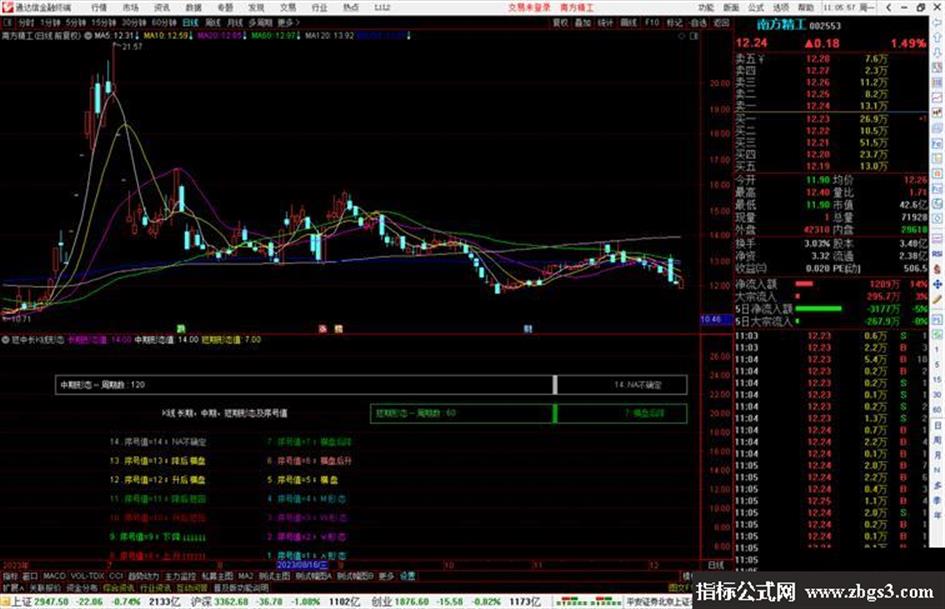 DRAWTEXT(CURRBARSCOUNT=119,23,'中期形态 -- 周期数 : 120'),COLORFFFFFF;