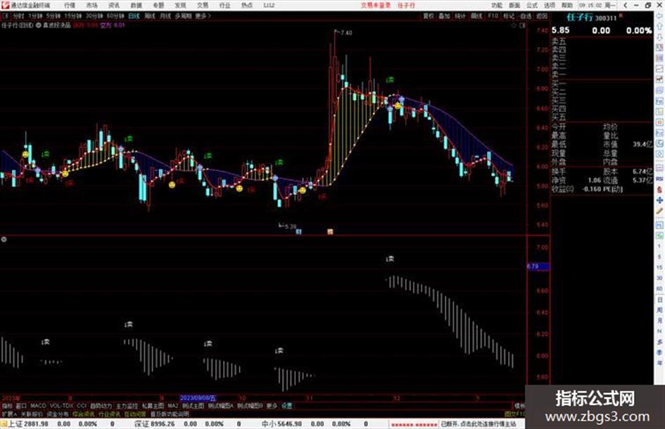 DRAWTEXT(crOSS(空方,多方),多方 * 1.03,'↓卖')COLOR00FF00;