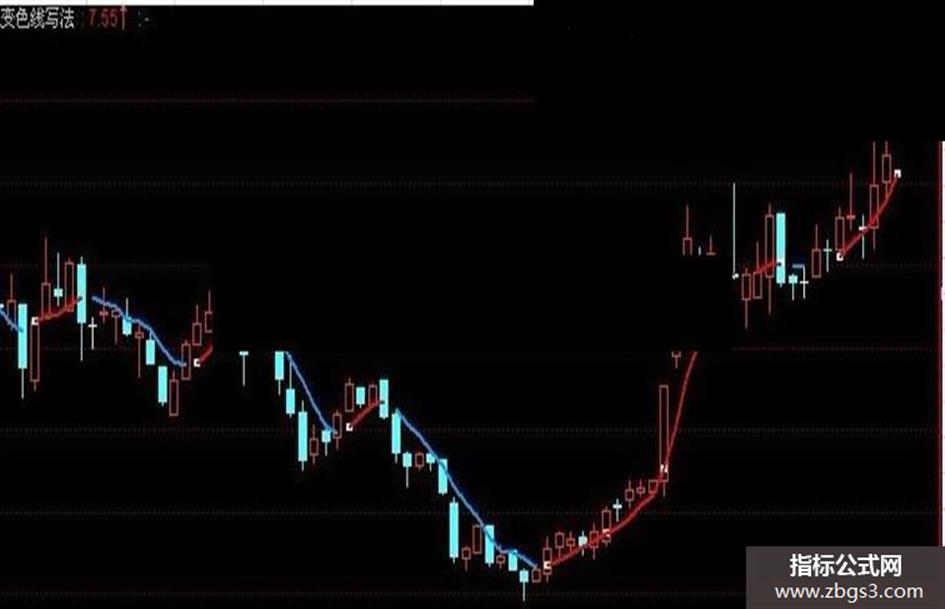 {通达信上下拐头变色指标公式--适用于主图和附图} AA:=MA(C,5);{指标线} BB:=MA(C,5);{指标线} IF(AA>REF(AA,1),BB,DRAWNULL),COLORRED,LINETHICK2;{上变色} IF(AA<REF(AA,1),BB,DRAWNULL),COLORFF9900,LINETHICK2;{下变色};