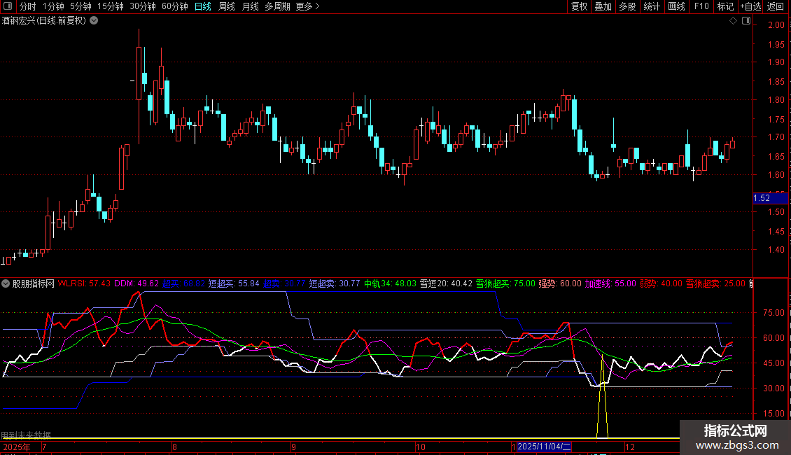 中轨34:MA(WLRSI,M),COLORGREEN;