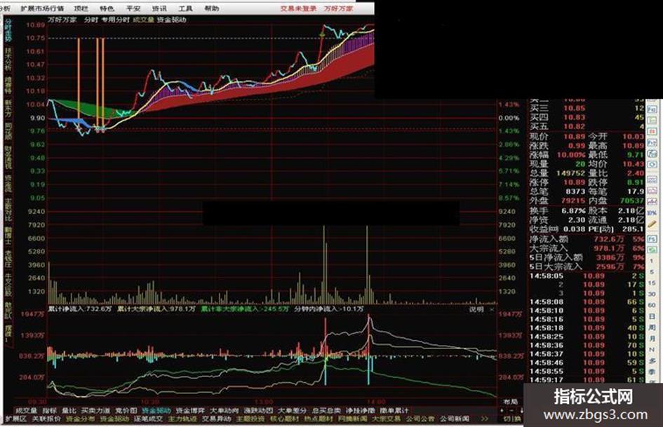 生命线:=SUM(VOL*(O+C)/2,88)/SUM(VOL,88),COLORFF80FF;