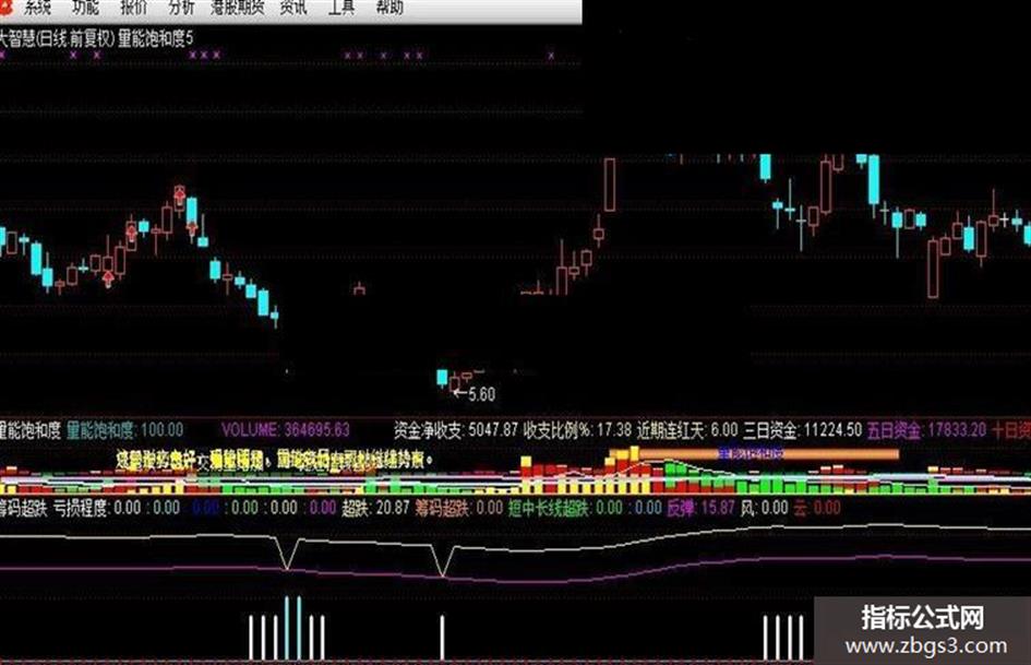 云:IF(超跌=反弹 AND CYS13<=-16 AND 筹码超跌=30 AND 短中长线超跌=40,-20,0),COLORRED,STICK,LINETHICK3;