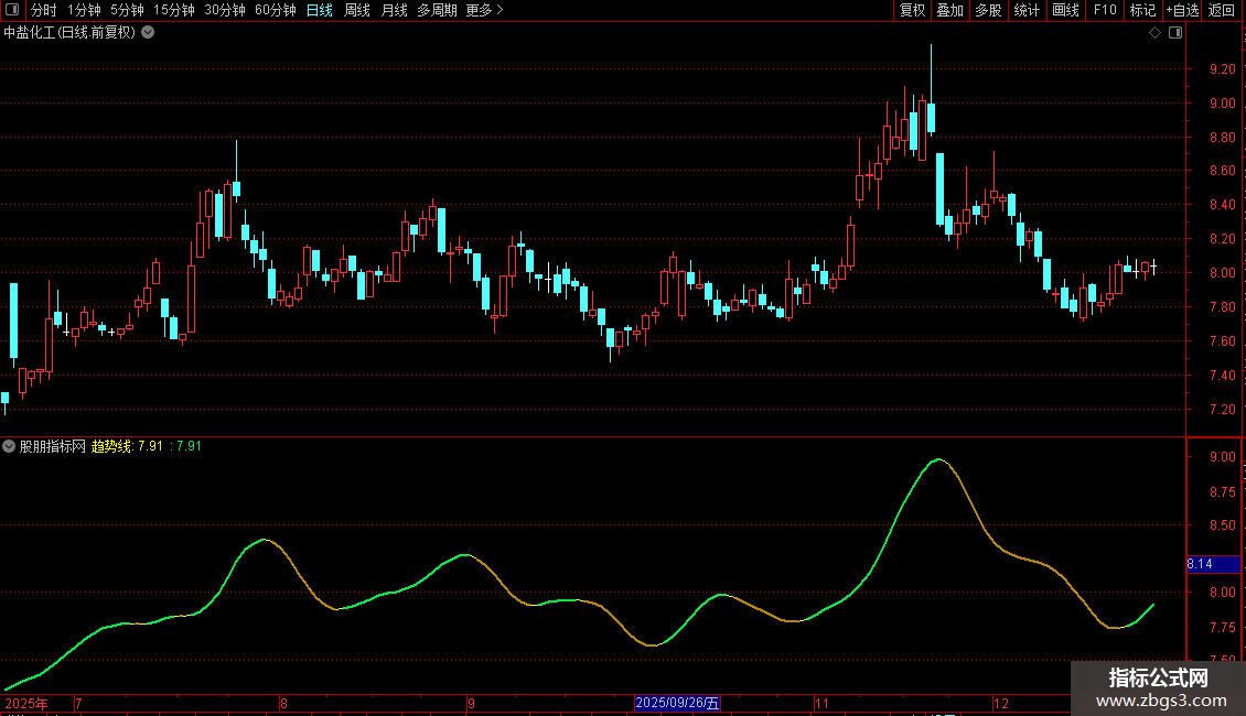趋势线:MA(FORCAST(CLOSE,13),5),COLORYELLOW,LINETHICK1;