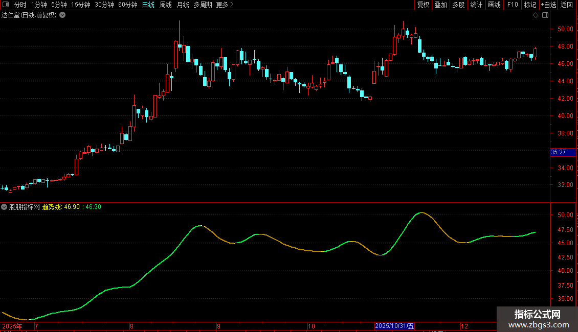 {我认为这一根线做为辅助判断是理想的,所以我把它给扒下来了,做为波段操作的一个依据。