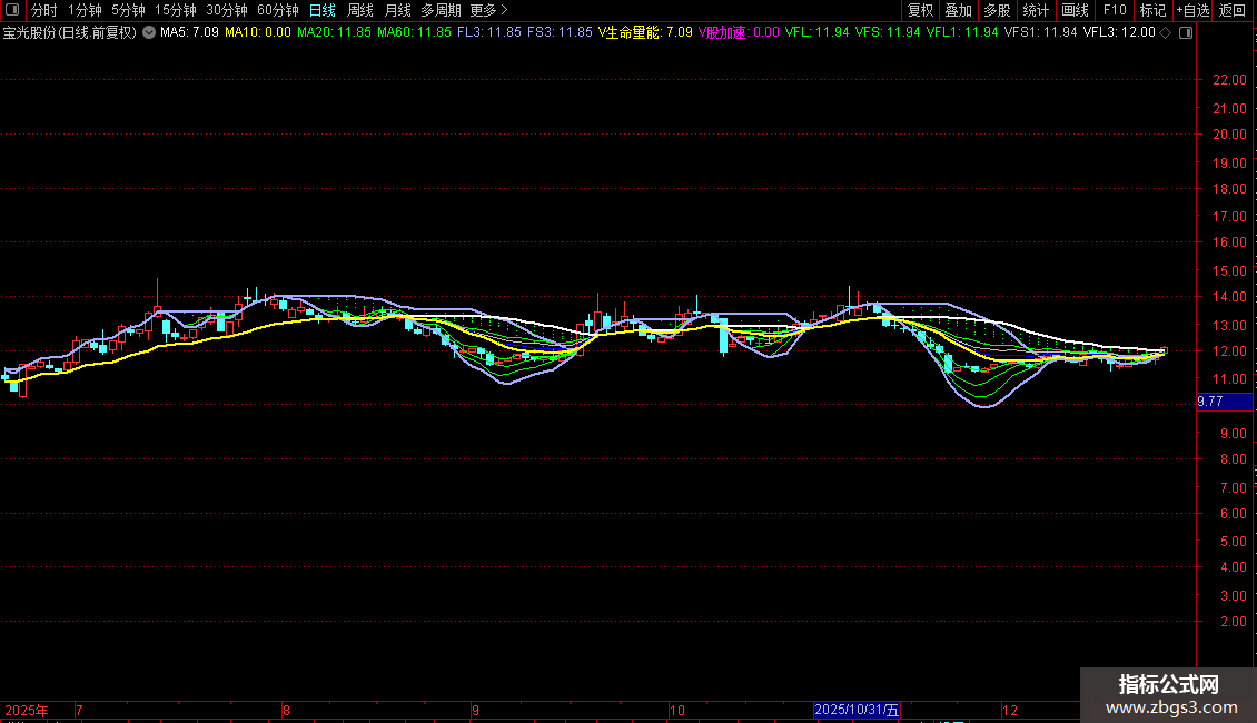 V生命量能:EMA(100*(CLOSE-LLV(LOW,34))/(HHV(HIGH,34)-LLV(LOW,34)),3)/4,LINETHICK0;