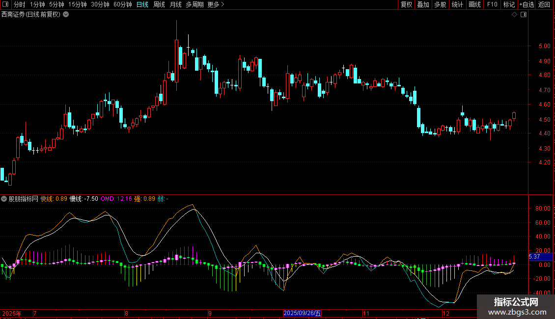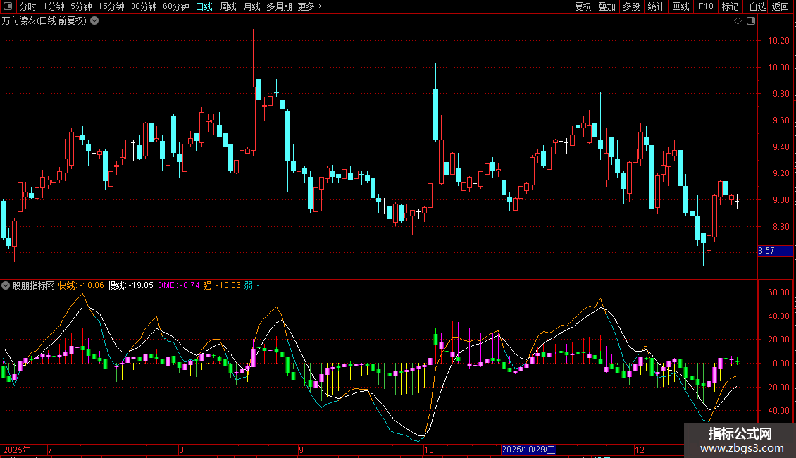 OMD:(快线-2*ADMA+慢线)/2, COLORSTICK;