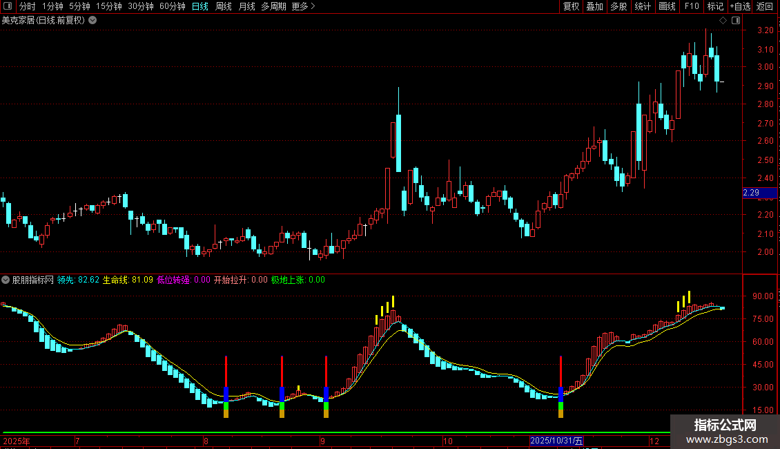 极地上涨:IF(A6,领先,0),COLORGREEN,LINETHICK2;