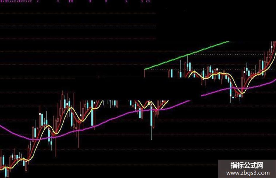 总趋势:EMA(EMA(EMA(EMA(EMA(CLOSE,55),2),2),2),2),LINETHICK2,COLORFF00FF;
