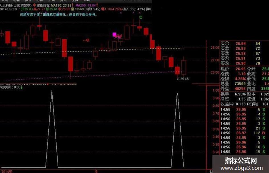 DRAWTEXT_FIX(情况13=1,0.10,0,0,'该股形态不佳,注意成交量变化,但目前不适合参与。'),COLORFFFF00;