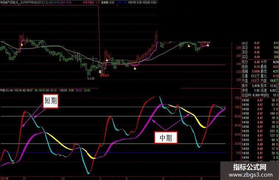 中期KDJ,黄色变紫色,做多,反之,休息。如果短期变暗红的同时,中期由黄变紫色,做多更为保险!