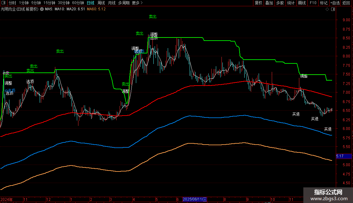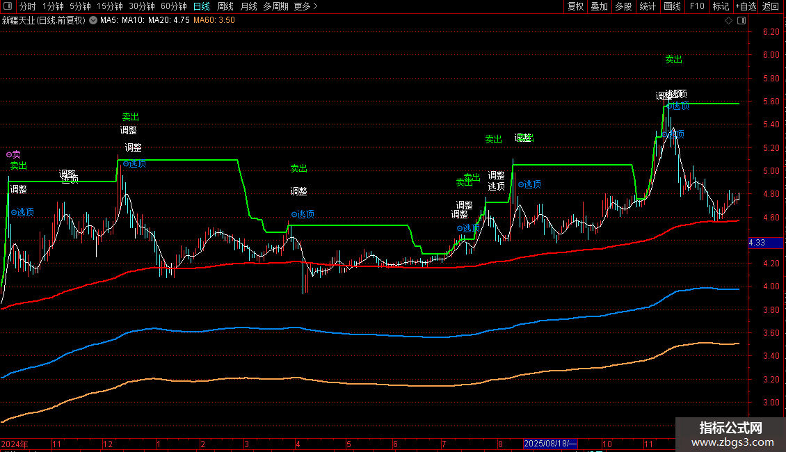 卖出提示包括输出的以下文字信号:调整、卖、卖出、逃、逃顶等。同样是根据股价运行情况决定仓位