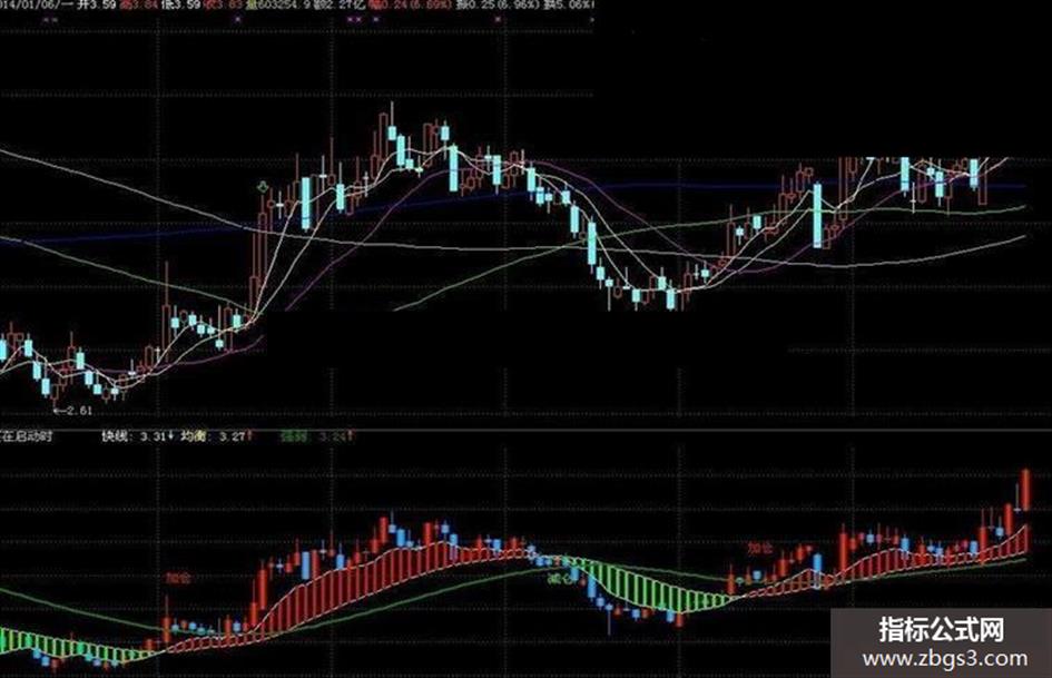 当满足条件快线>均衡时,在快线和均衡位置之间画柱状线,宽度为0.1,0不为0则画空心柱.,线宽为1,COLOR0000FF