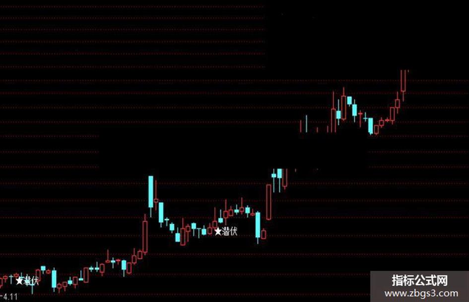 HV:=HHV(V,5)=V OR V/REF(V,1)>=5; FT:=BARSLAST(HV); 平台:=IF(HV,C,REF(C,FT)); DRAWTEXT(平台<REF(平台,1) AND C>REF(C,1),L,'★潜伏'),COLORFFFFFF,LINETHICK2;