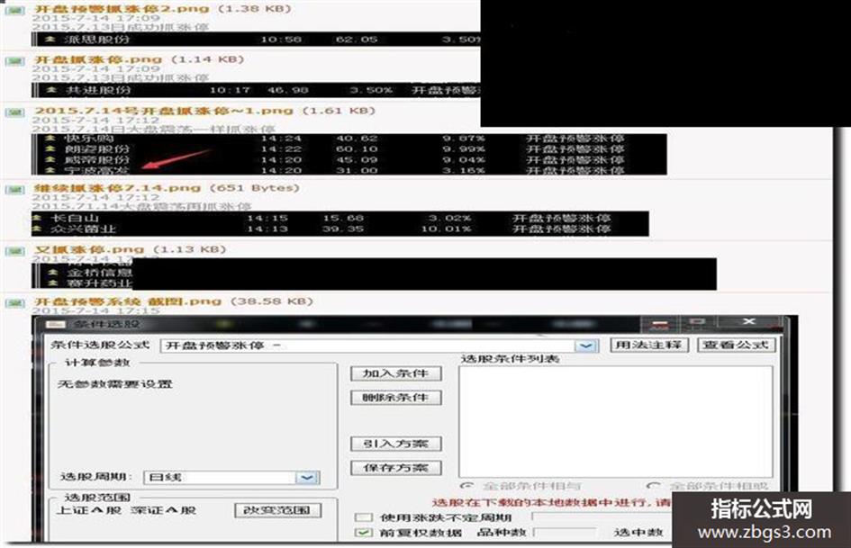 今天也就是2015.7.14日 预警列表 出现信号 603788 603099 603918 !注意看我的截图时间,当然也出了写开盘直接涨停的股票~ 我们以不追高、保守的方法 直接排除涨停个股,狙击涨停