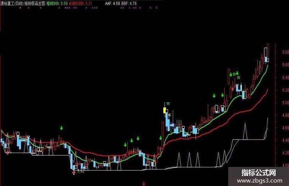 短线BBI:(MA(CLOSE,3)+MA(CLOSE,6)+MA(CLOSE,12)+MA(CLOSE,24))/4,COLORGREEN,LINETHICK2;