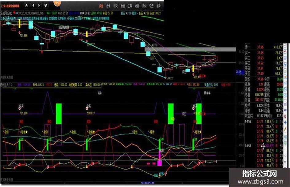 通达信完美主图顶底背离趋势线必杀线压力支撑F10等一体的跟庄指标!