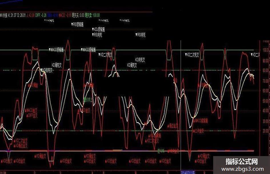 DRAWTEXT(CROSS(周D,周K),85,'KD周死叉') ;