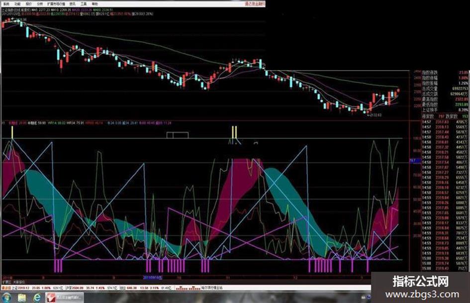 股票洗盘时,绿线(WR14)在下,红线在上,黄线居中;洗盘最凶时,绿线下穿中线下触底线,红线仍然在中线上;一旦绿线回升到中线,就可以大胆介入。