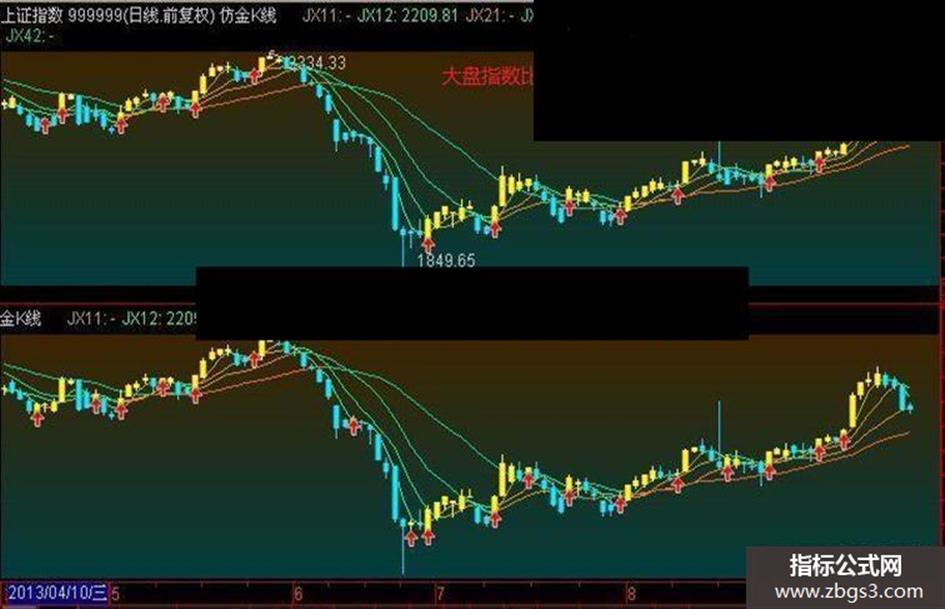 {特注,此公式为【仿金K线】,虽略有差异,差异不大,可以替用【金K线】}
