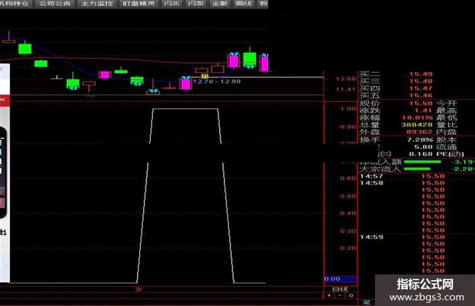 涨停:=IF((((C - TC3) * 100) / TC3) >= (10 - ((0.03 * 100) / TC3)),1,0);