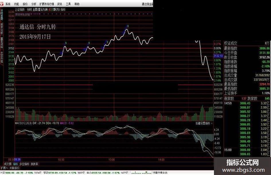 开始正题,前阵子徐小明老师(我很崇拜)整了一个分时九转,搞火了飞狐,突然来了兴趣,就想在通达信上看看能不能实现,倒腾了几天,果真实现了,不多说,规矩我懂,上图。