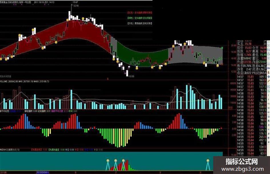 指标不在多在精,自己合适的就是最好的。量价时空都有了,简单明了。另外炒股靠心态,看大势,通道绿色观望,灰色少量资金做震荡,红色在通道下缘买进把握比较大。