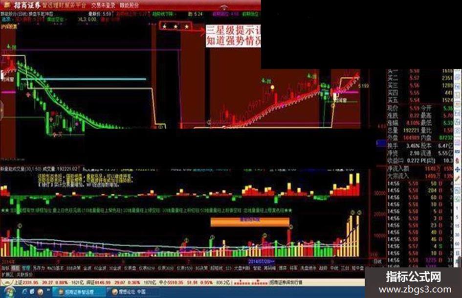 趋势线上升:IF(HS,趋势线,DRAWNULL),LINETHICK2,COLORRED;