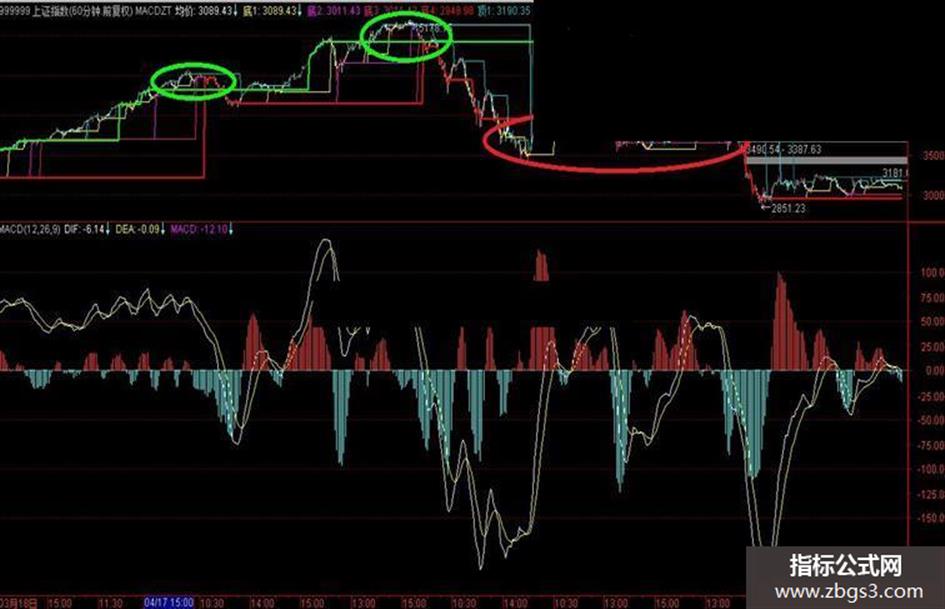 3.MACD柱状线由红变绿(正变负),卖出信号;由绿变红,买入信号。