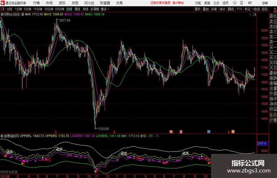 使用方法:股价破下轨紫色不破出现黄叉或启,黑马一号,一穿五即是买入点,高位长上升或者有绿叉,K线变绿必减仓或清仓出场,避免被套。