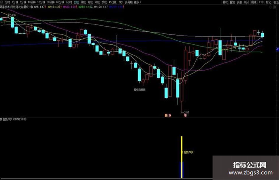 DRAWTEXT(CDNZ,H*60,' ↑ 超跌N字'),COLORYELLOW;