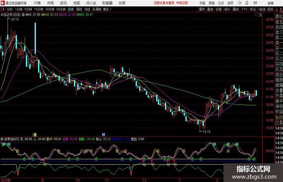 DRAWTEXT(CROSS(庄家,散户) AND 散户>40 AND 71>散户,50,'出')COLOR00FFFF;