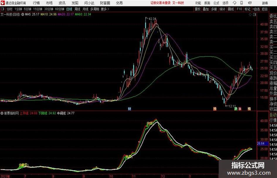 中间线:EMA(下降线,N2),COLORWHITE,LINETHICK2;