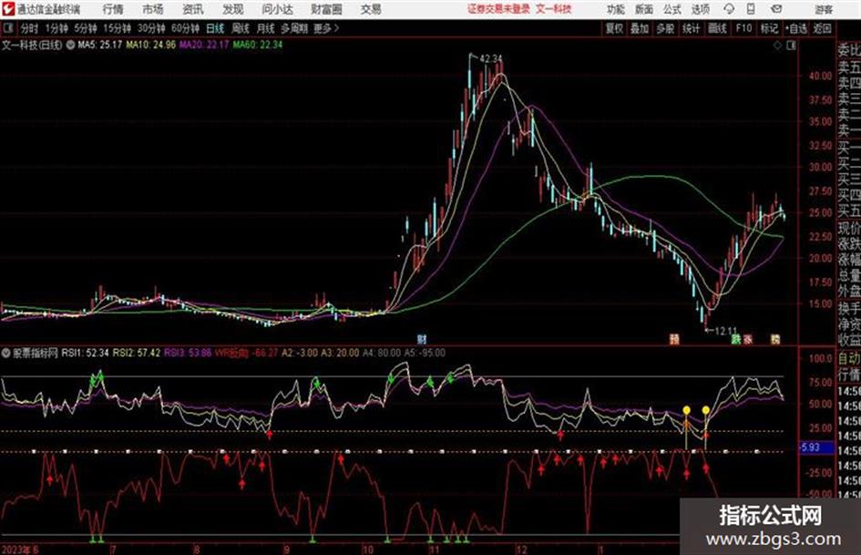 TJ2X:=WR反向< A5 AND REF(WR反向,1)>A5;