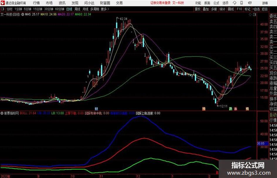 上穿轨道:=CROSS(C,BOLL) OR CROSS(C,UB);