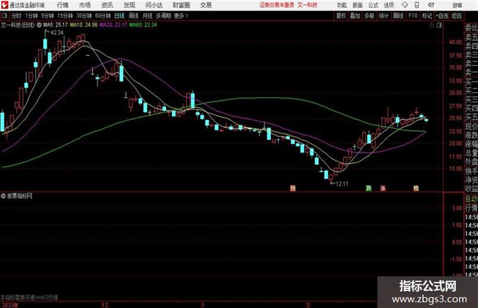 AAA:EMA(C,5)-EMA(C,30),NODRAW;DDD:EMA(AAA,5),NODRAW;买方意向:(AAA-DDD)*2,COLORSTICK,LINETHICK3;STICKLINE(买方意向 > 0,买方意向,0,3.0,0),COLOR0000AA;STICKLINE(买方意向 > 0,买方意向,0,2.5,0),COLOR0000BB;STICKLINE(买方意向 > 0,买方意向,0,1.2,0),COLOR0000CC;STICKLINE(买方意向 > 0,买方意向,0,0.5,0),COLOR0000DD;STICKLINE(买方意向 > 0,买方意向,0,0.15,0),COLOR0000EE;STICKLINE(买方意向 > 0,买方意向,0,0.05,0),COLOR0000FF;STICKLINE(买方意向<0,0,买方意向,3,0),COLOR118811;STICKLINE(买方意向<0,0,买方意向,2.5,0),COLOR11AA11;STICKLINE(买方意向<0,0,买方意向,1.5,0),COLOR11BB11;STICKLINE(买方意向<0,0,买方意向,1.0,0),COLOR11DD11;超B:=L2_AMO(0,2)/10000.0;大B:=L2_AMO(1,2)/10000.0;中B:=L2_AMO(2,2)/10000.0;小B:=L2_AMO(3,2)/10000.0;超S:=L2_AMO(0,3)/10000.0;大S:=L2_AMO(1,3)/10000.0;中S:=L2_AMO(2,3)/10000.0;小S:=L2_AMO(3,3)/10000.0;净流入:=(超B+大B+中B+小B)-(超S+大S+中S+小S),NODRAW;超大单:=(超B)-(超S),NODRAW;大单:=(大B)-(大S),NODRAW;中单:=(中B)-(中S),NODRAW;小单:=(小B)-(小S),NODRAW;DAZHI:=CONST(MAX(ABS(净流入),MAX(ABS(超大单),MAX(ABS(大单),MAX(ABS(中单),ABS(小单)))))),NODRAW;DRAWRECTREL(0,CONST(830-(ABS(超大单)*500/DAZHI)),30,935,IF(CONST(超大单)>0,RGB(255,0,0),RGB(23,125,255)));DRAWRECTREL(35,CONST(830-(ABS(大单)*500/DAZHI)),65,935,IF(CONST(大单)>0,RGB(255,0,0),RGB(23,125,255)));DRAWRECTREL(70,CONST(830-(ABS(中单)*500/DAZHI)),100,935,IF(CONST(中单)>0,RGB(255,0,0),RGB(23,125,255)));DRAWRECTREL(105,CONST(830-(ABS(小单)*500/DAZHI)),135,935,IF(CONST(小单)>0,RGB(255,0,0),RGB(23,125,255)));DRAWRECTREL(140,CONST(830-(ABS(净流入)*500/DAZHI)),170,935,IF(CONST(净流入)>0,RGB(255,0,0{255,255,255}),RGB(23,125,255)));DRAWTEXT_FIX(CURRBARSCOUNT=1,0.002,0.25,0,'当天资金 (万元)'),COLORYELLOW;DRAWNUMBER_FIX(CURRBARSCOUNT=1,0.002,0.55,0,INTPART(超大单)),COLORYELLOW;DRAWNUMBER_FIX(CURRBARSCOUNT=1,0.035,0.555,0,INTPART(大单)),COLORYELLOW;DRAWNUMBER_FIX(CURRBARSCOUNT=1,0.070,0.550,0,INTPART(中单)),COLORYELLOW;DRAWNUMBER_FIX(CURRBARSCOUNT=1,0.106,0.55,0,INTPART(小单)),COLORYELLOW;DRAWNUMBER_FIX(CURRBARSCOUNT=1,0.145,0.55,0,INTPART(净流入)),COLORYELLOW;DRAWTEXT_FIX(CURRBARSCOUNT=1,0.002,1,0,'超大'),COLORYELLOW;DRAWTEXT_FIX(CURRBARSCOUNT=1,0.040,1,0,'大单'),COLORYELLOW;DRAWTEXT_FIX(CURRBARSCOUNT=1,0.075,1,0,'中单'),COLORYELLOW;DRAWTEXT_FIX(CURRBARSCOUNT=1,0.112,1,0,'小单'),COLORYELLOW;DRAWTEXT_FIX(CURRBARSCOUNT=1,0.145,1,0,'净流'),COLORYELLOW;