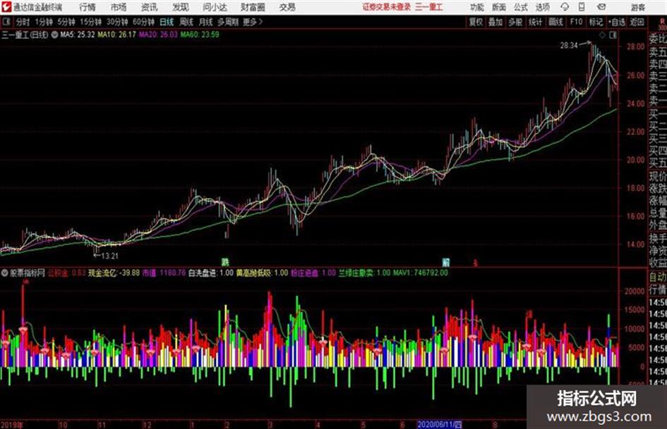 卖盘:=IF((CLOSE > OPEN),(0 - (VAR1 * ((HIGH - CLOSE) +