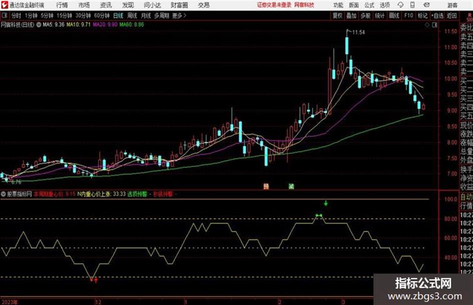 逃顶预警:IFF(N内重心价上涨>=80,N内重心价上涨,DRAWNULL),CIRCLEDOT,COLORGREEN;