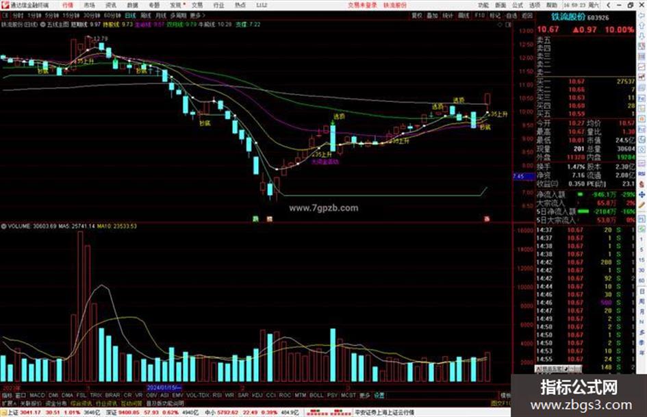 支撑:MA(REF(LLV(C,30),1),2),COLORABFF46;