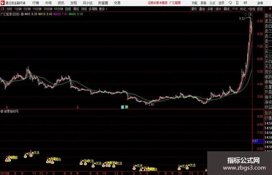 1、当源码中的“优佳”或“优选”中有一个破0,则“关注=1”时,主副图会出现一个洋红色的柱子“钱袋子”优选信号。当“关注=1”时,3日内的成功概率>70%。