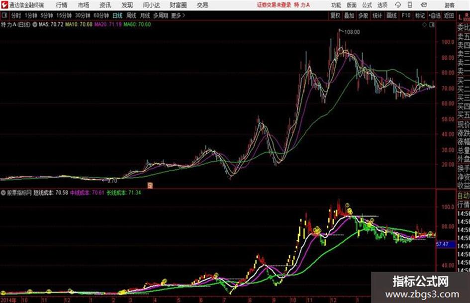 操盘线A赋值:(收盘价/中线成本)*100-100