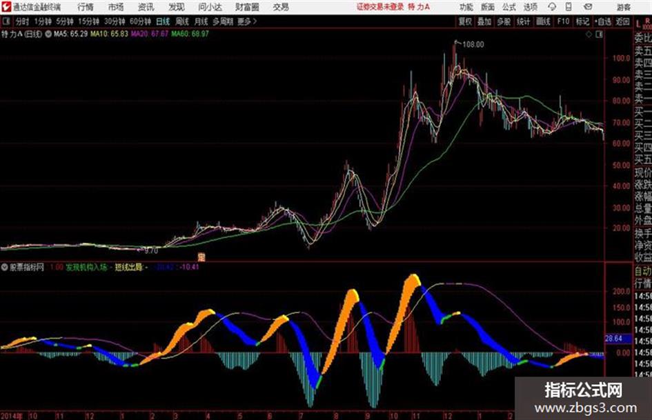 发现机构入场:IF(DIFF>=REF(DIFF,1) AND DEA<REF(DEA,1),DIFF,DRAWNULL),COLOR00C500,LINETHICK4;