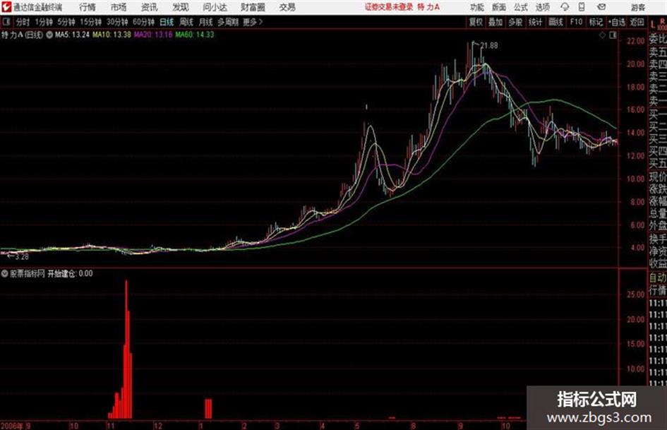 开始建仓:MA(IF(LOW<=RE,(RD+RF*2)/2,0),3)/618*R10,COLORSTICK;