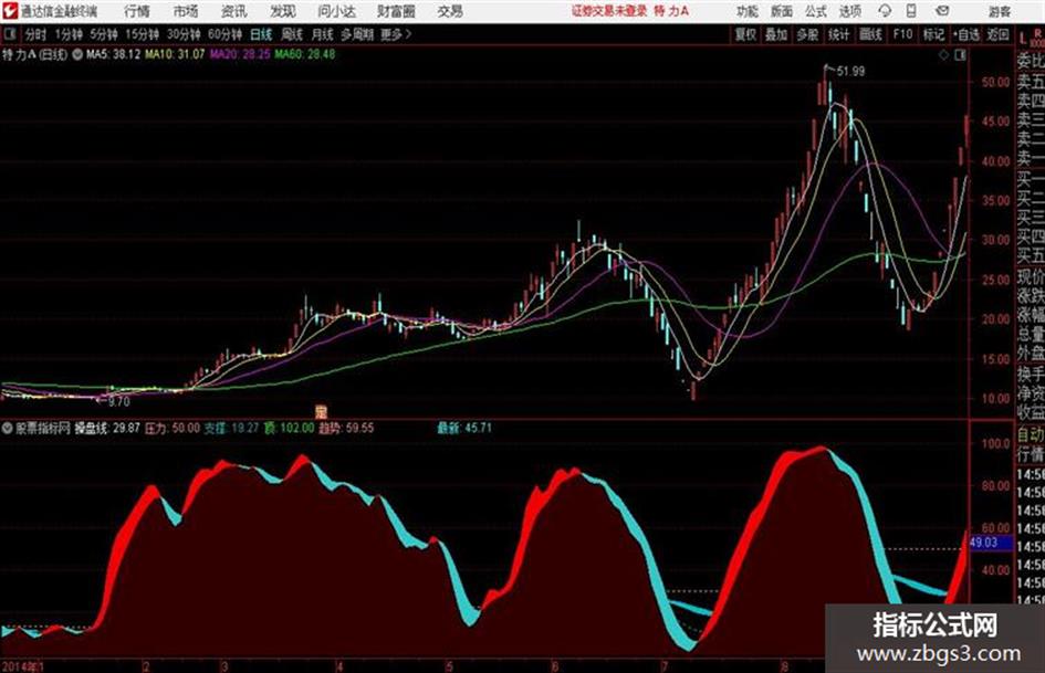 操盘线:(26*Q+25*REF(Q,1)+24*REF(Q,2)+23*REF(Q,3)+22*REF(Q,4)+21*REF(Q,5)