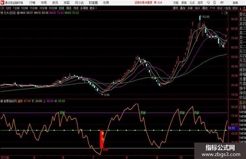 DRAWTEXT(CROSS(趋势,19),18,'底部'),COLORRED;STICKLINE((CROSS(趋势,15)),50,20,8,0),COLORRED;