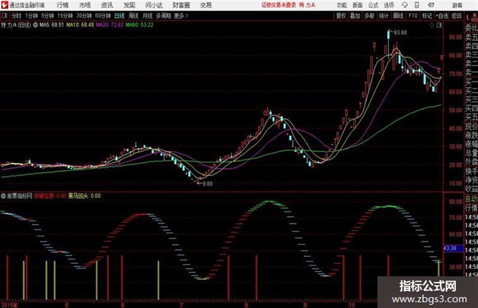 黑马回头:IF(U3 OR U4,35,0),COLORYELLOW,POINTDOT;