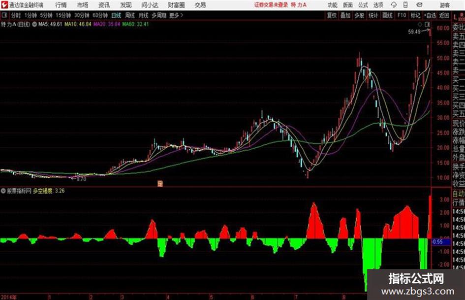 STICKLINE((多空强度> 0),0,多空强度*0.6,2,0),COLORRED;